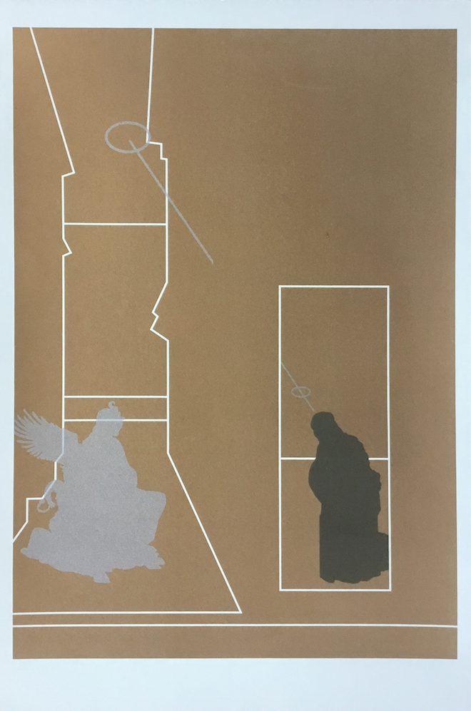 Previous Image Next Image A Meeting of Earth and Aether [after Cr] (gold) 2019 Screenprint in acrylic and mud from the estuary of the river Lune. 76x51cm Somerset tub-sized paper