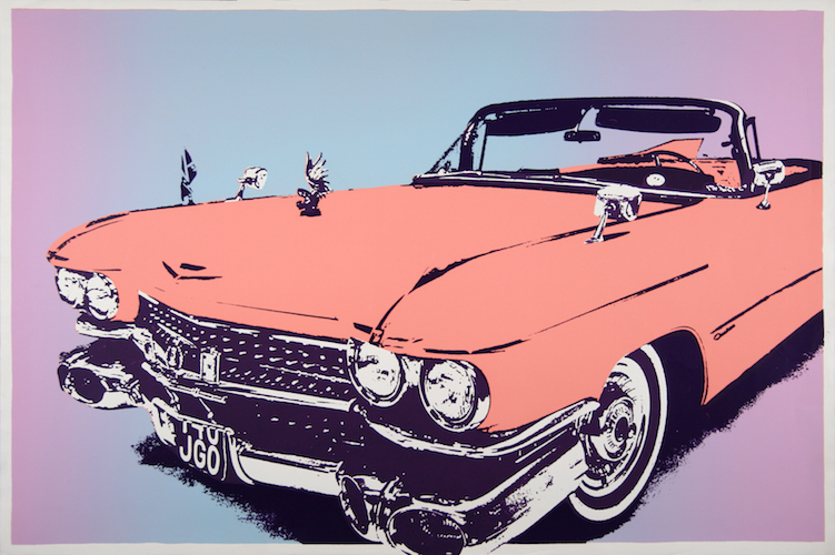 Previous Image Next Image Pink Car Screenprint. 20x30ins. 1976. Poster for Eddie and the Hot Rods, minus the lettering.